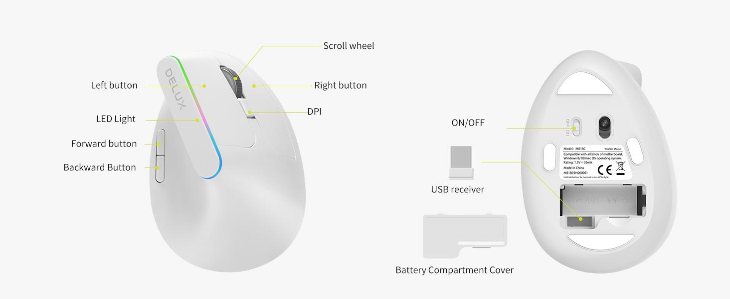 Delux M618C Ergonomic 2.4G 5D Wireless Mouse